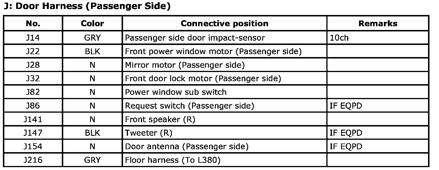 J: Door Harness (Passenger Side) Index: