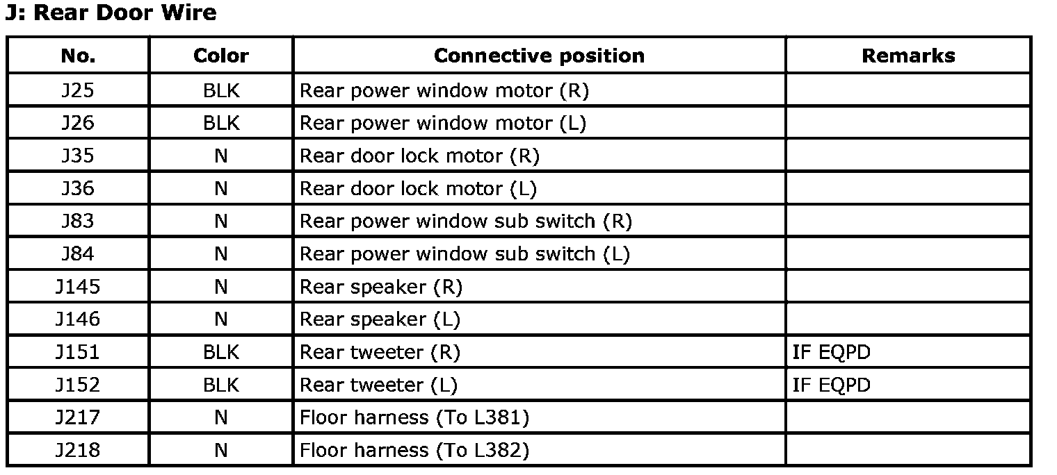 J: Rear Door Wire Index: