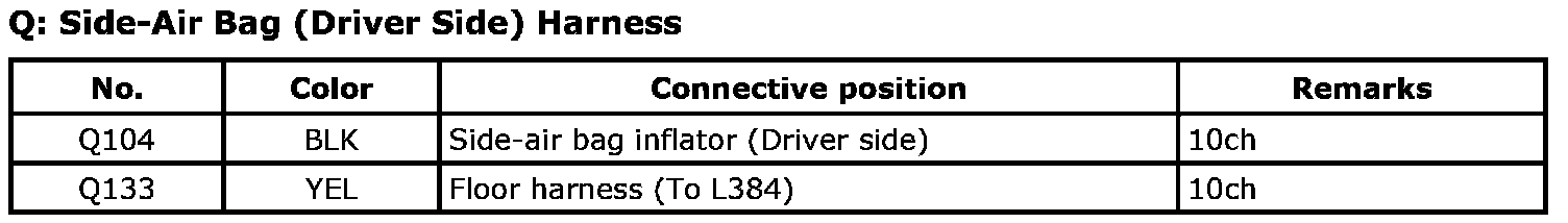 Q: Side-Air Bag (Driver Side) Harness Index: