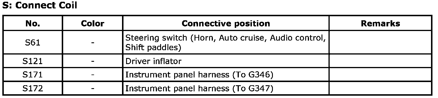 G: Instrument Panel Harness, Instrument Panel Antenna Wire / S: Connect Coil