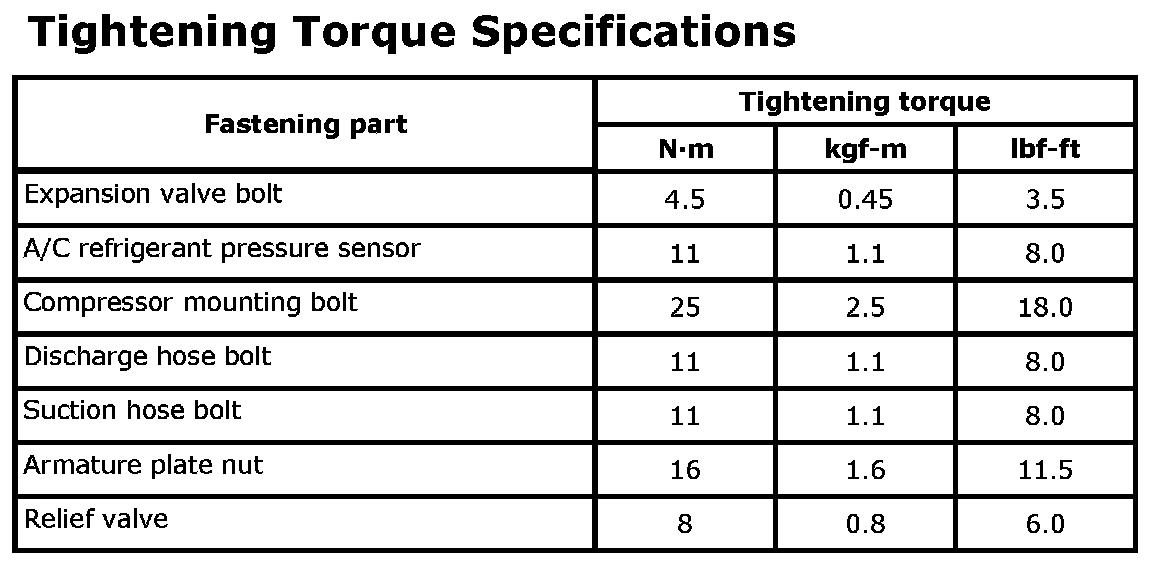 Tightening Torque Specifications
