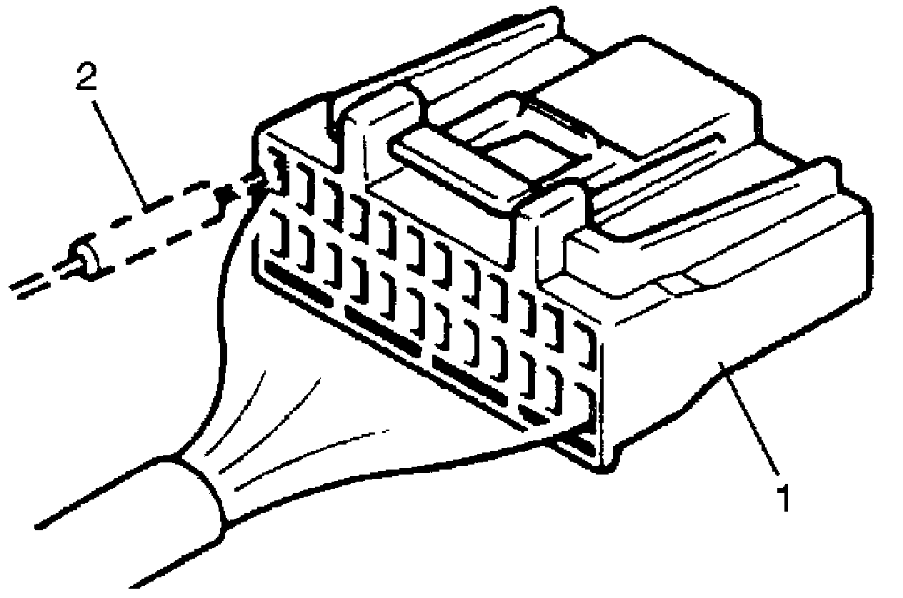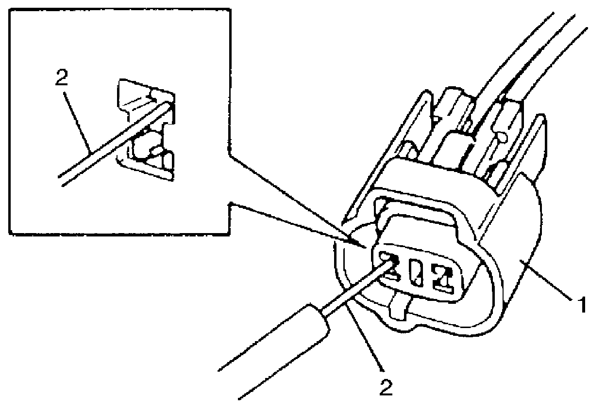 - When taking measurements at electrical connectors using a tester probe, be sure to insert the probe (2) from the wire harness side (backside) of the connector (1).