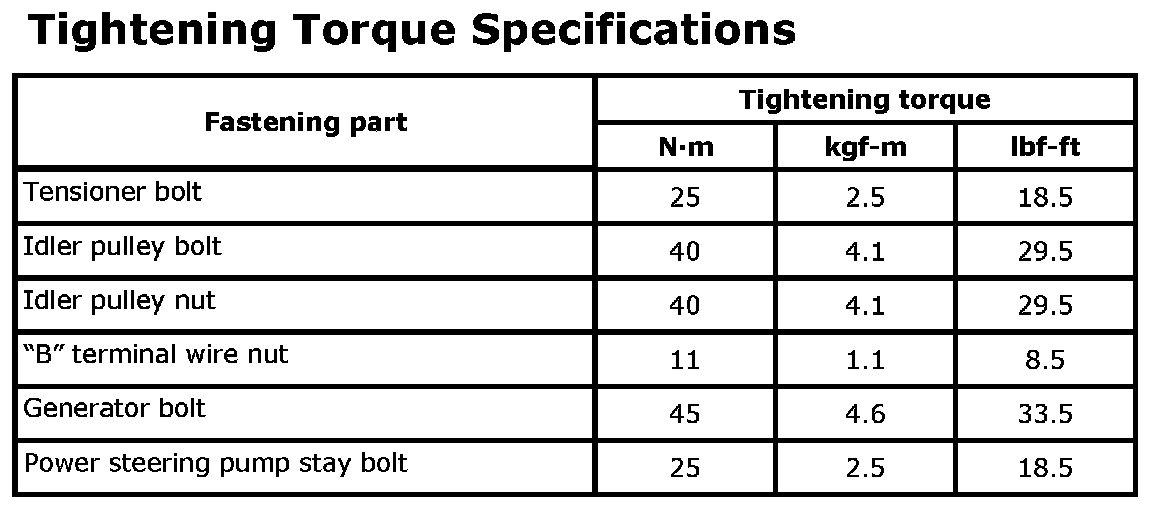 Tightening Torque Specifications