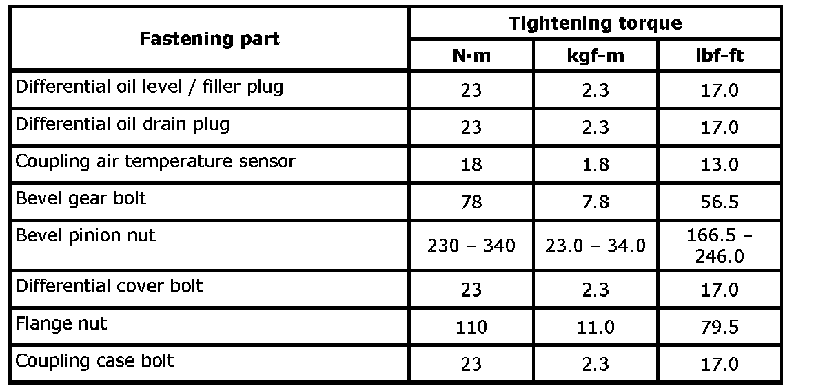 For the tightening torque of fastener not specified in this section, refer to Fasteners Information.
