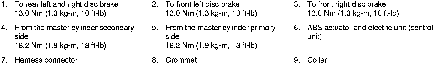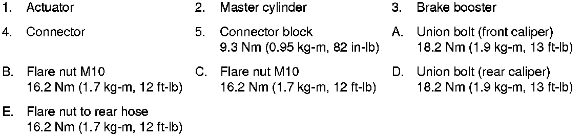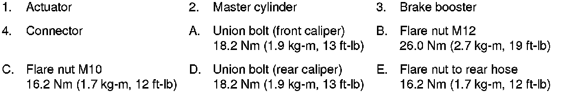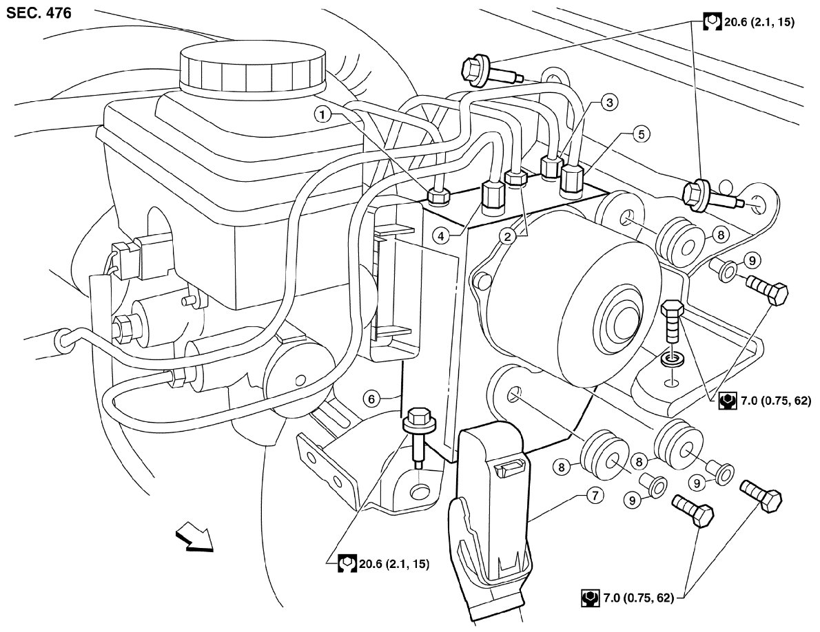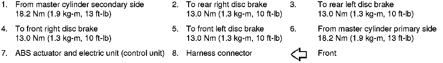 - After installation of the ABS actuator and electric unit (control unit), refill brake system with new brake fluid. Then bleed the air from the system. Refer to [Brake Fluid: Bleeding Brake System] Service and Repair.
