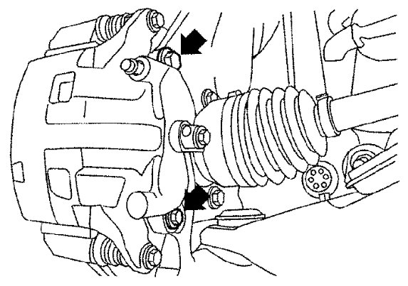 3) Remove the sliding pin bolts and remove the caliper body from the torque member.