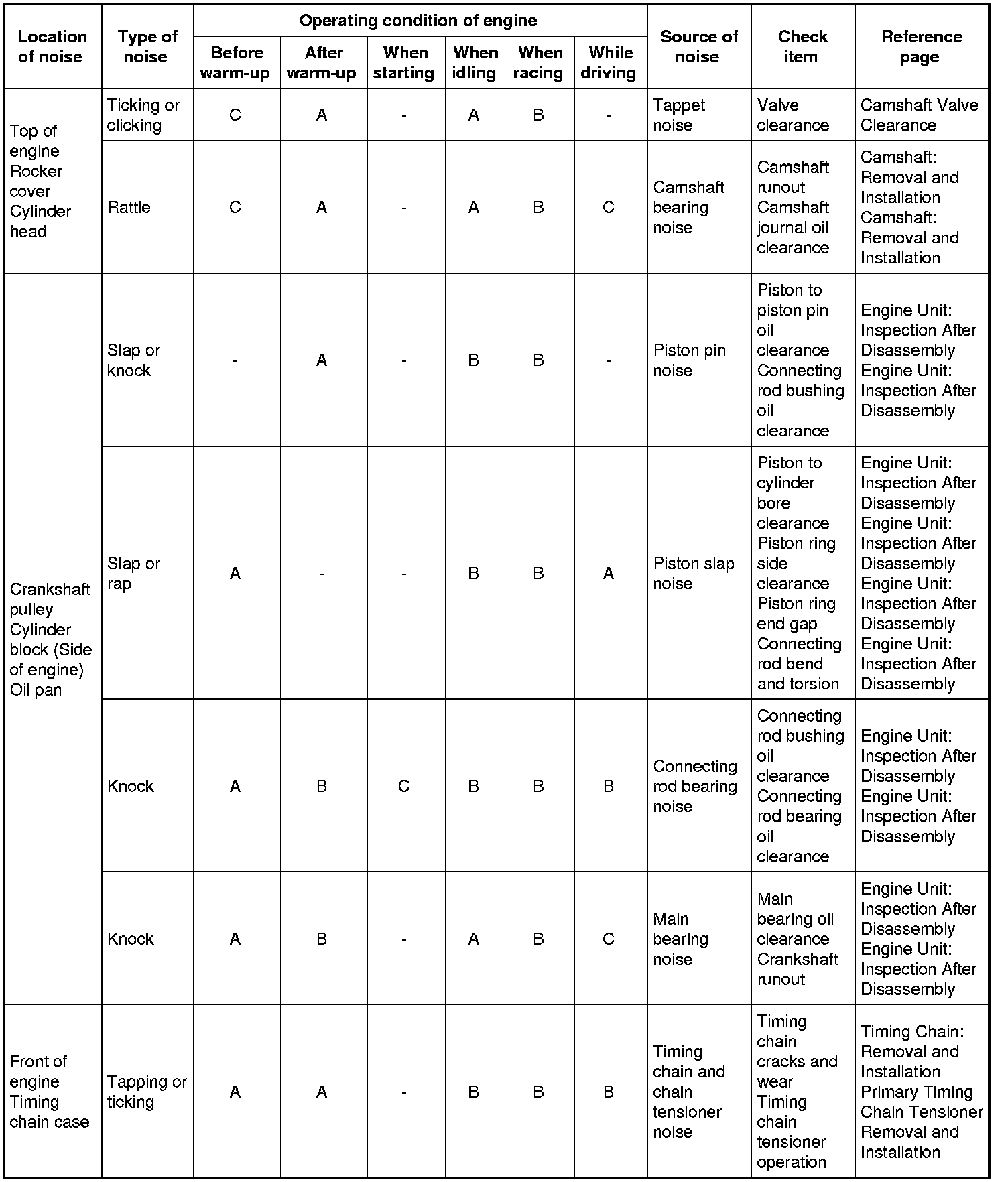 NVH Troubleshooting Chart