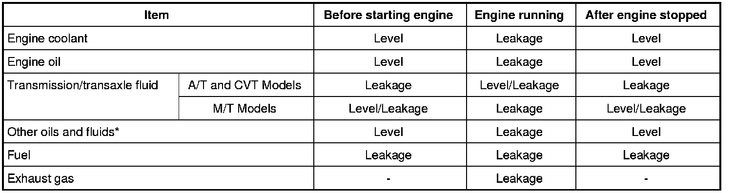 - Warm up engine thoroughly to make sure there is no leakage of fuel, exhaust gas, or any oils/fluids including engine oil and engine coolant.
