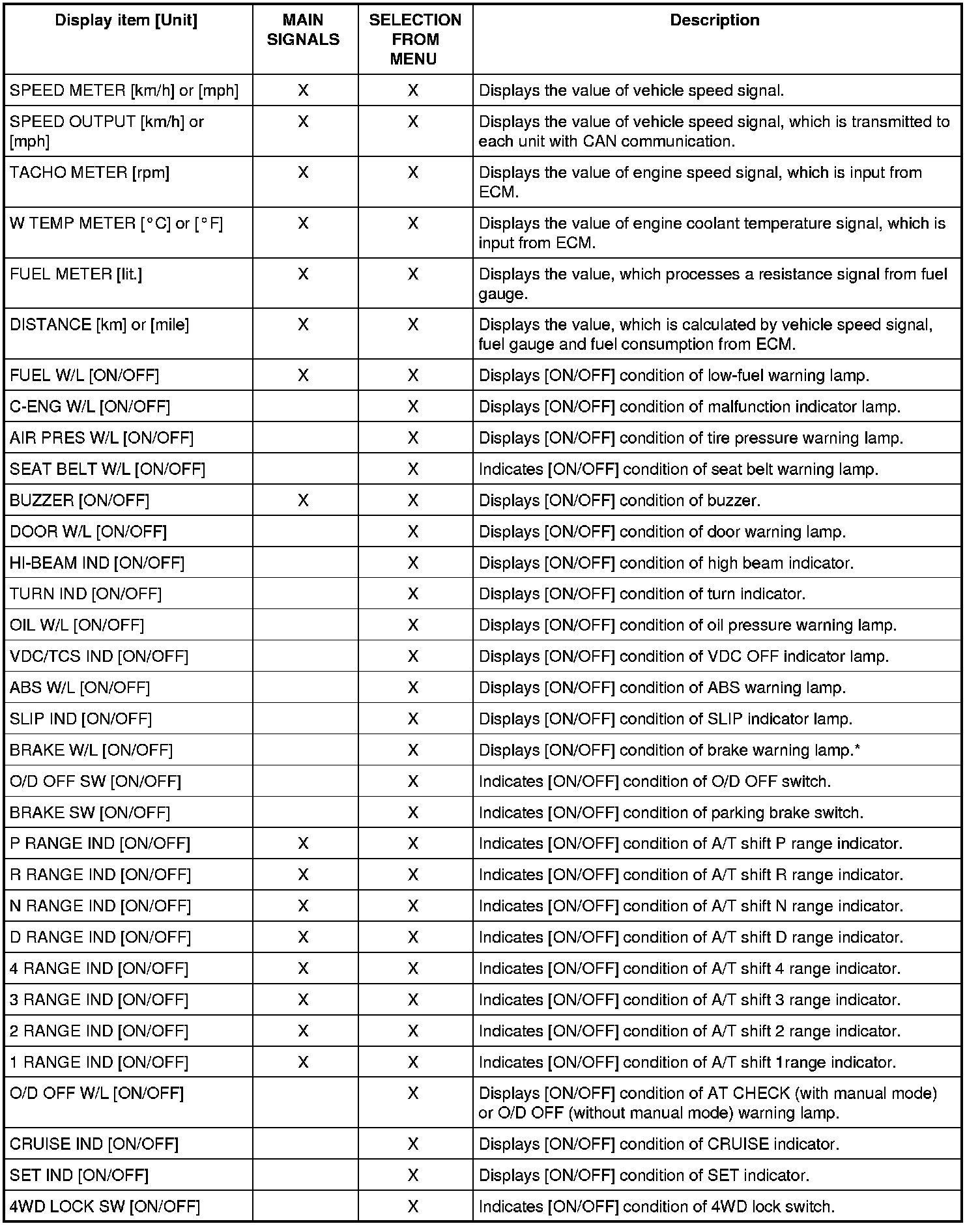 *: The monitor will indicate "OFF" even though the brake warning lamp is on if either of the following conditions exist.
