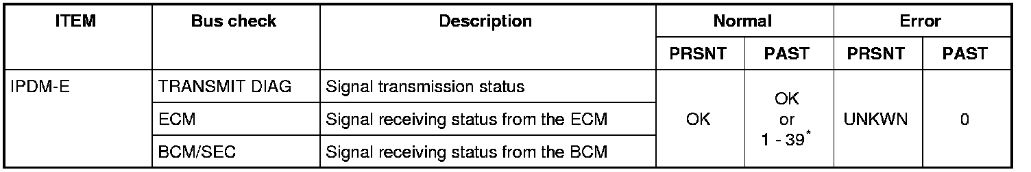 0: Error at present, 1 - 39: Error in the past (Number means the number of times the ignition switch is turned OFF->ON)