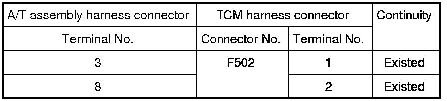 3 Check the continuity between the A/T assembly harness connector and TCM harness connector.