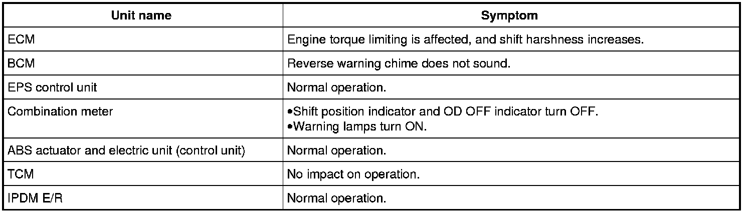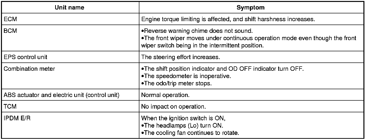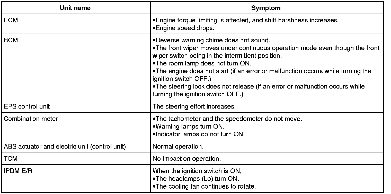- Each vehicle differs in symptom of each unit under fail-safe mode and CAN communication line wiring.