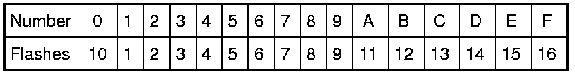 A particular trouble code can be identified by the number of four-digit numeral flashes per the following.