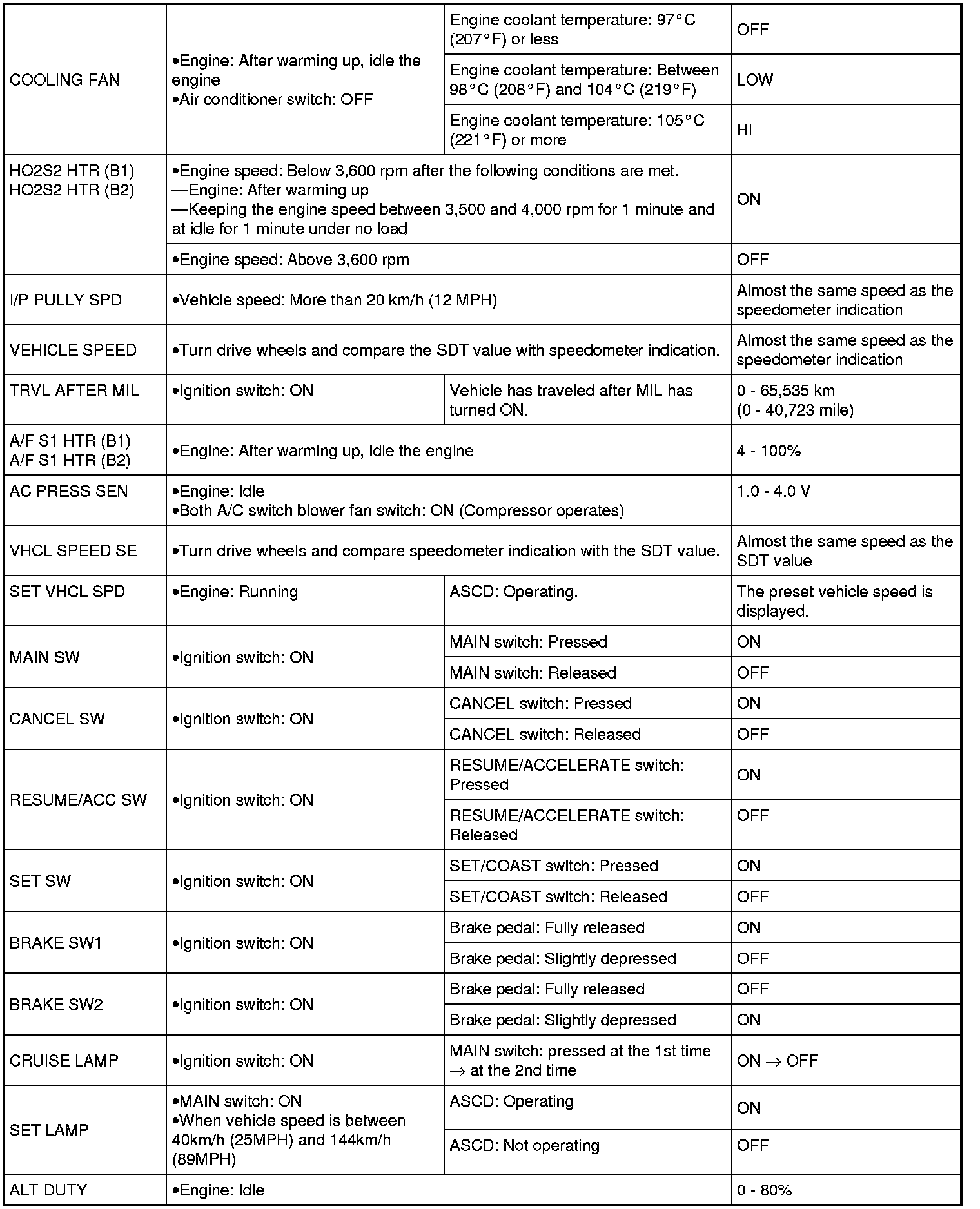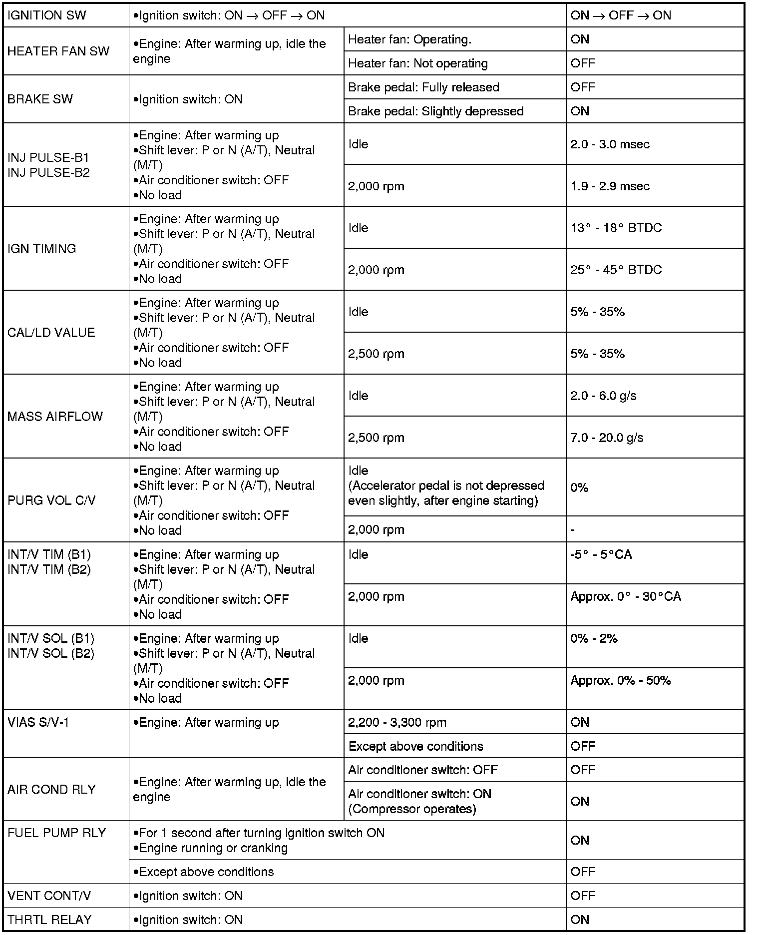- Specification data are output/input values which are detected or supplied by the ECM at the connector.
