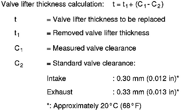 5) Use the equation below to calculate valve lifter thickness for replacement.