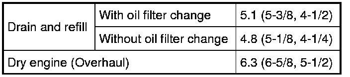 Engine Oil Capacity (Approximate)
