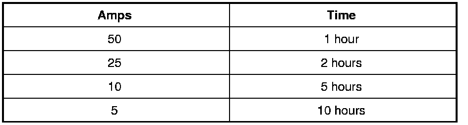 A sulphated battery may sometimes be brought back into service by means of a long, slow charge, 12 hours or more, followed by a battery capacity test.