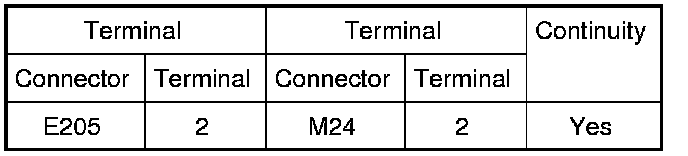 4 Check continuity between generator harness connector E205 (A) terminal 2 and ground.