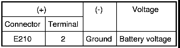 3 Check voltage between starter motor connector E210 terminal 2 and ground.