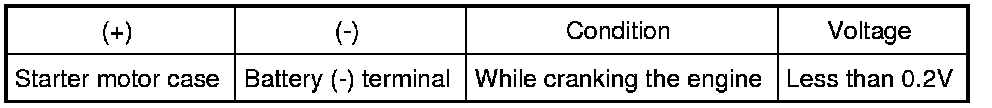 Check voltage between starter motor case and battery negative terminal while cranking the engine.