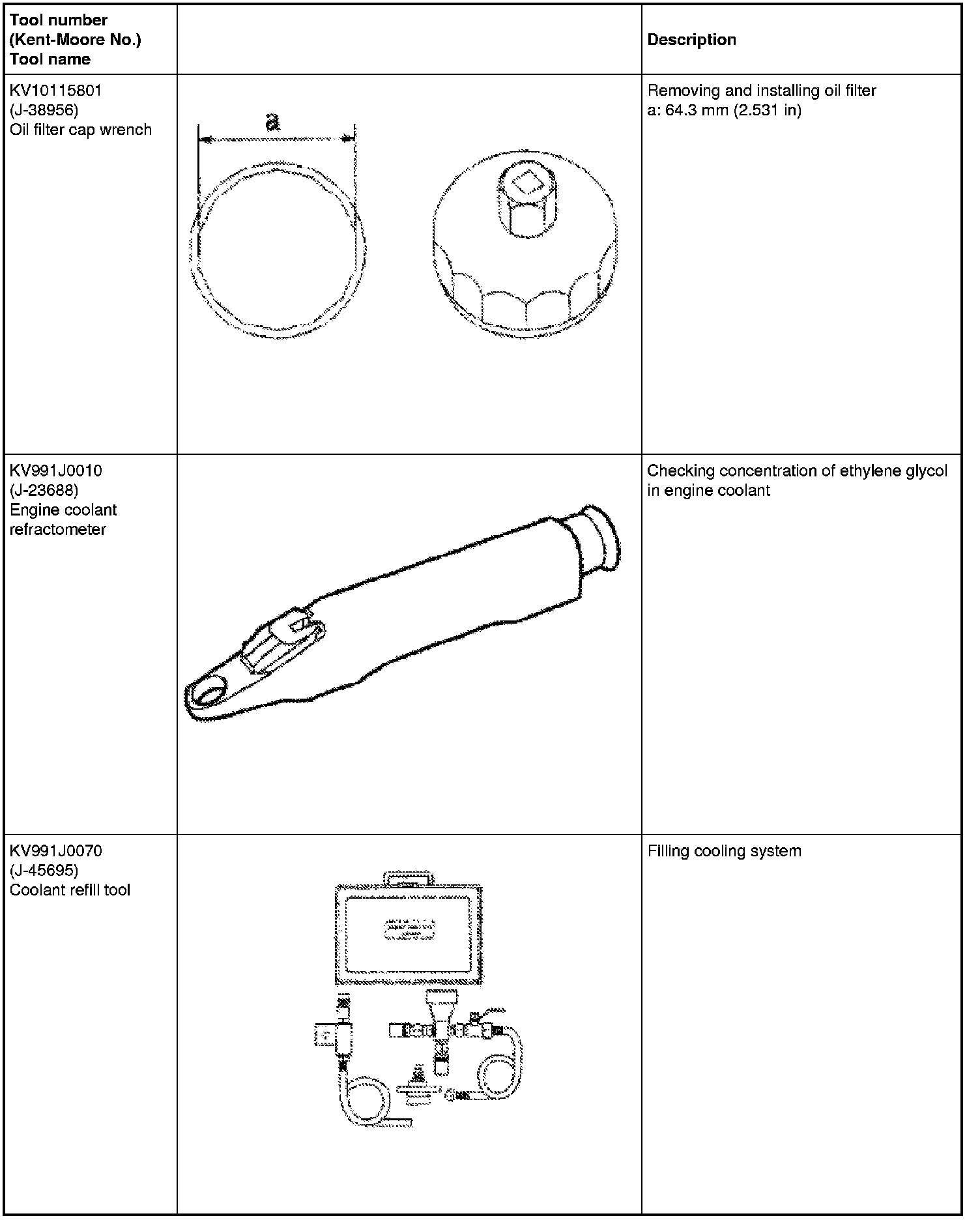 The actual shapes of the Kent-Moore tools may differ from those of the special service tools illustrated here.
