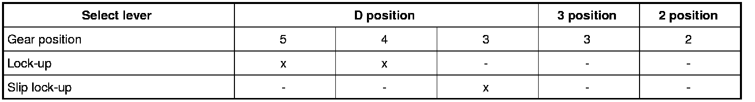 Lock-up Operation Condition Table (QR25DE Models)
