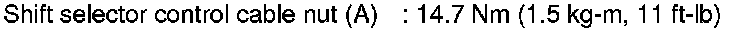 3) Push the shift selector control cable in the direction shown with a force of 9.8 N (1kg, 2.2 lb), and release it. This is in the natural state, tighten shift selector control cable nut (A) to specifications.
