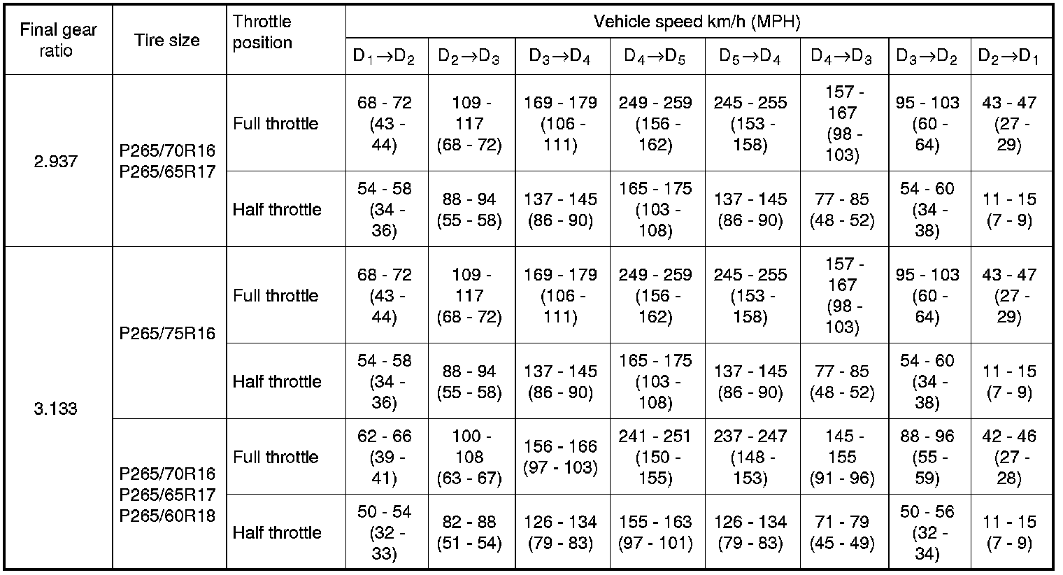 Vehicle Speed at Which Gear Shifting Occurs