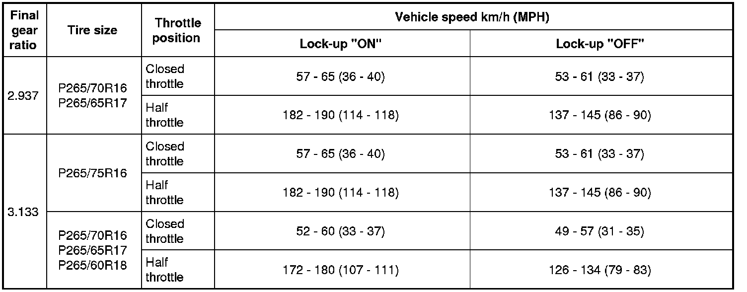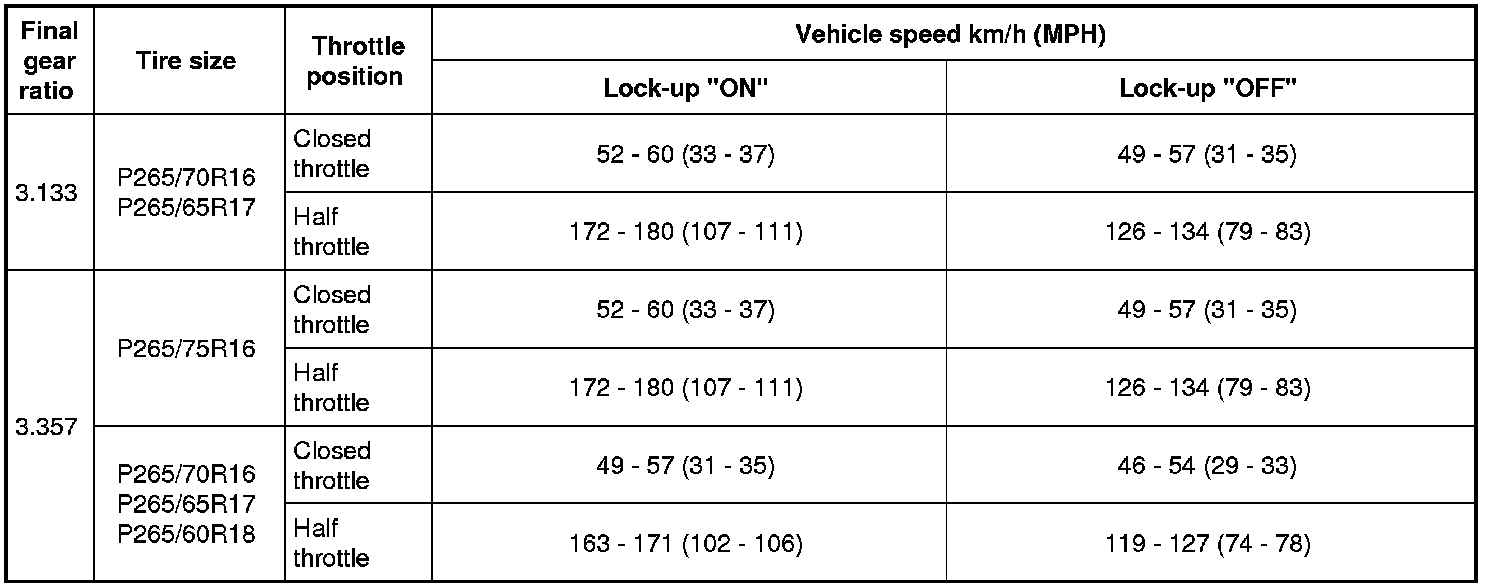 Vehicle Speed at Which Lock-up Occurs/Releases