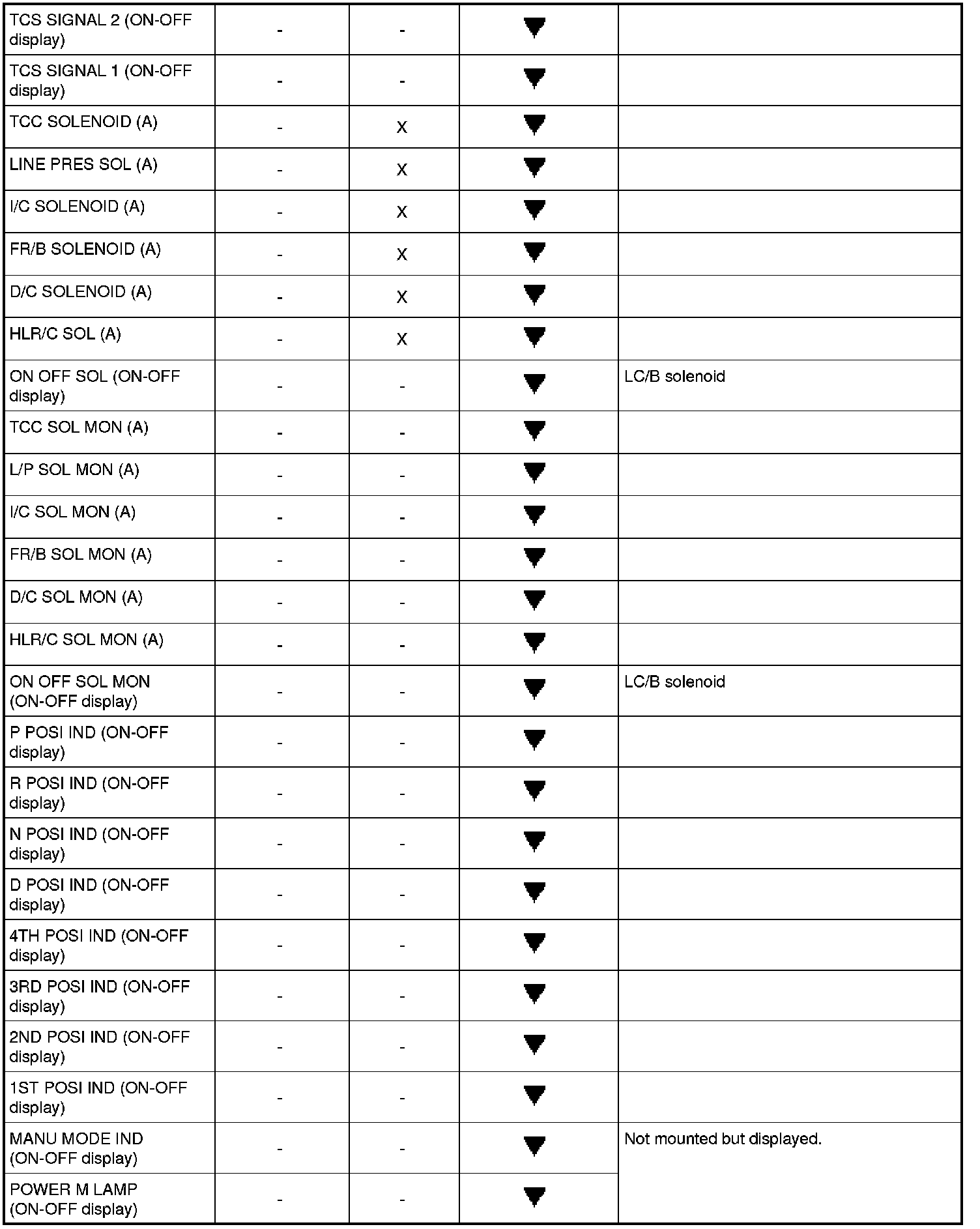 X: Standard, -: Not applicable,: Option