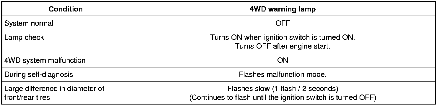 4WD Warning Lamp Indication