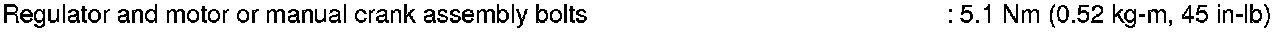 a) Loosely install the top rear regulator bolt to use along with the temporary holds on the window motor or crank assembly to install the assembly in the door.