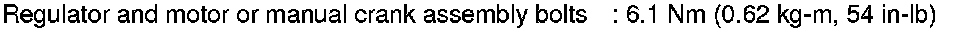 a) Loosely install the top rear regulator bolt to use along with the temporary holds on the window motor or manual crank assembly to install the assembly in the door.