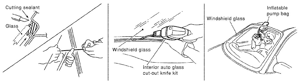 When cutting the glass from the vehicle, always wear safety glasses and heavy gloves to help prevent glass splinters from entering your eyes or cutting your hands.