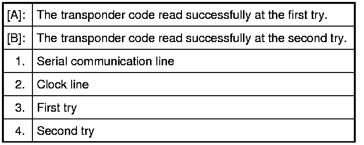 When ECM cannot read the transponder code at the first try, ECM tries to read the transponder code repeatedly up to 8 times. The second waveform is the example showing that ECM read the transponder code successfully at the second try.