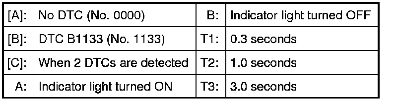 When more than 2 DTCs are stored in memory, flashing for each DTC starts with the smallest DTC number in increasing order. Also, DTC is indicated repeatedly until the ignition switch is turned OFF.