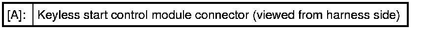 Keyless start control module and its circuits can be checked at keyless start control module wiring connectors by measuring voltage and resistance.