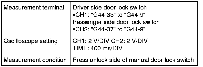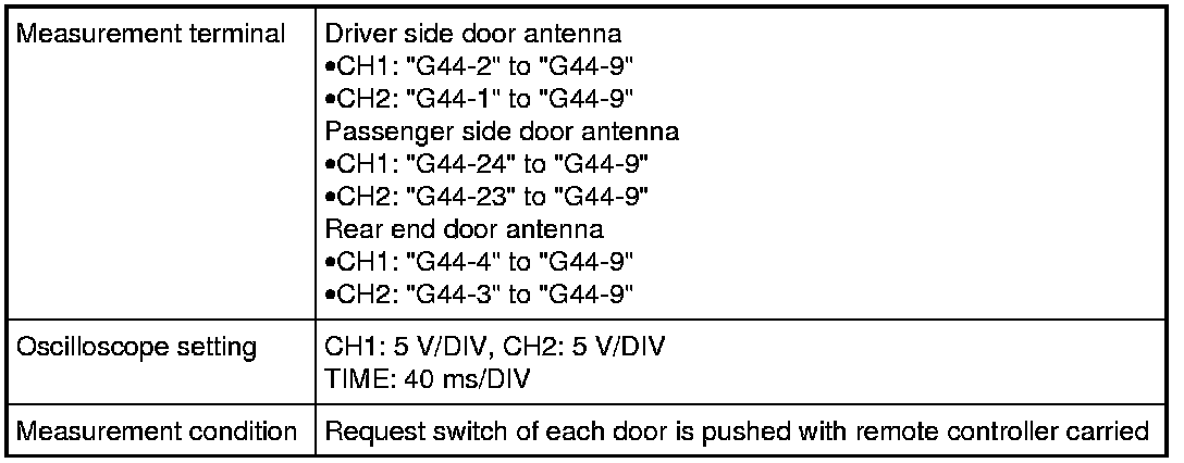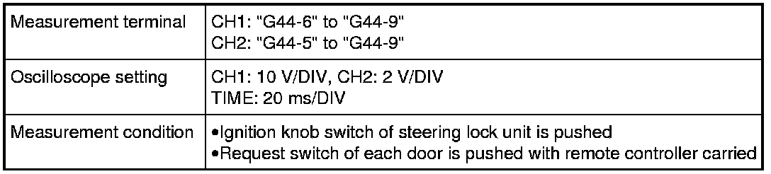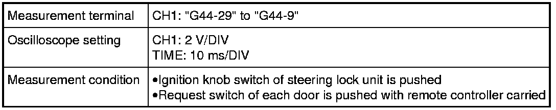 (Signal (1) communicated between keyless start control module and steering lock unit when measurement condition described below applies)