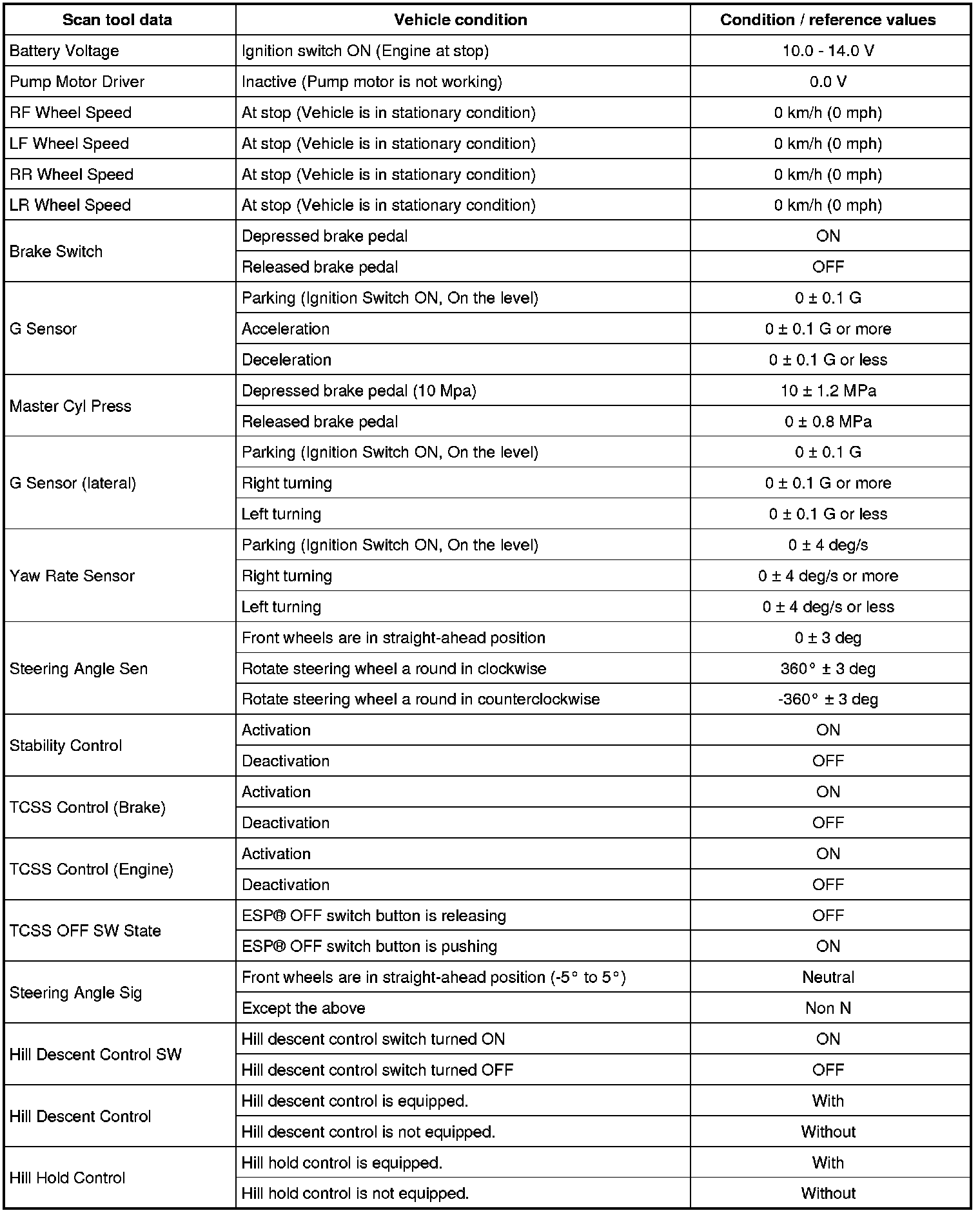 As the data values are standard values estimated on the basis of values obtained from the normally operating vehicles by using a scan tool, use them as reference values. Even when the vehicle is in good condition, there may be cases where the checked value does not fall within each specified data range. Therefore, judgment as abnormal should not be made by checking with these data alone.
