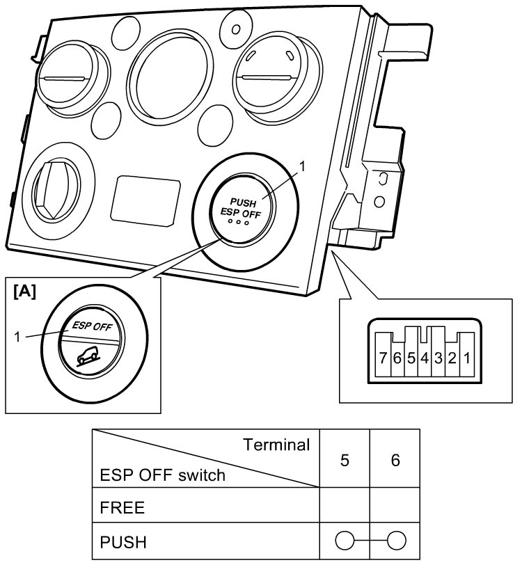If check result is not as specified, replace ESP(R) OFF switch (1).