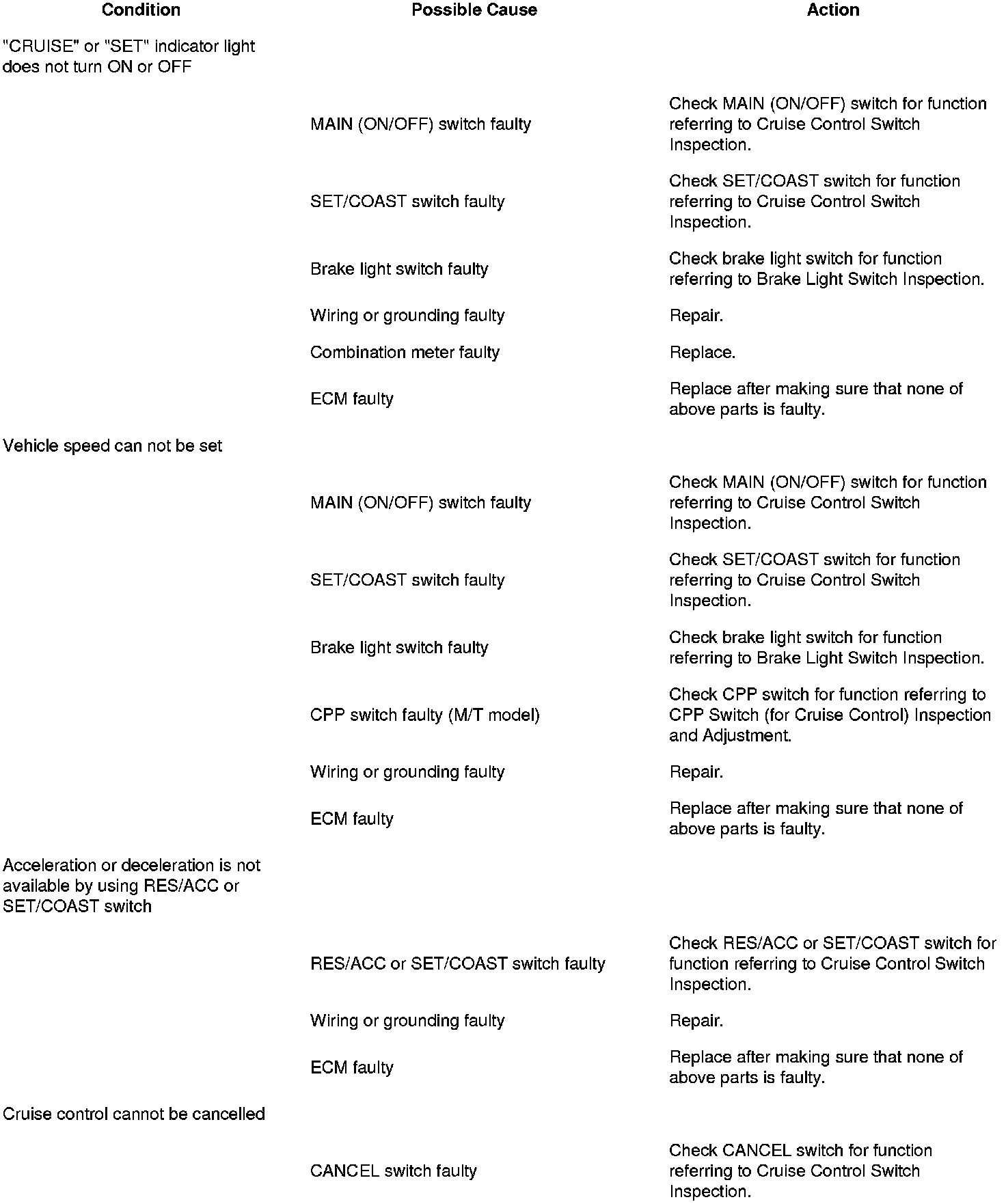- Before performing this Cruise Control System Symptom Diagnosis, perform cruise control system check referring to Cruise Control System Check Cruise Control System Check.