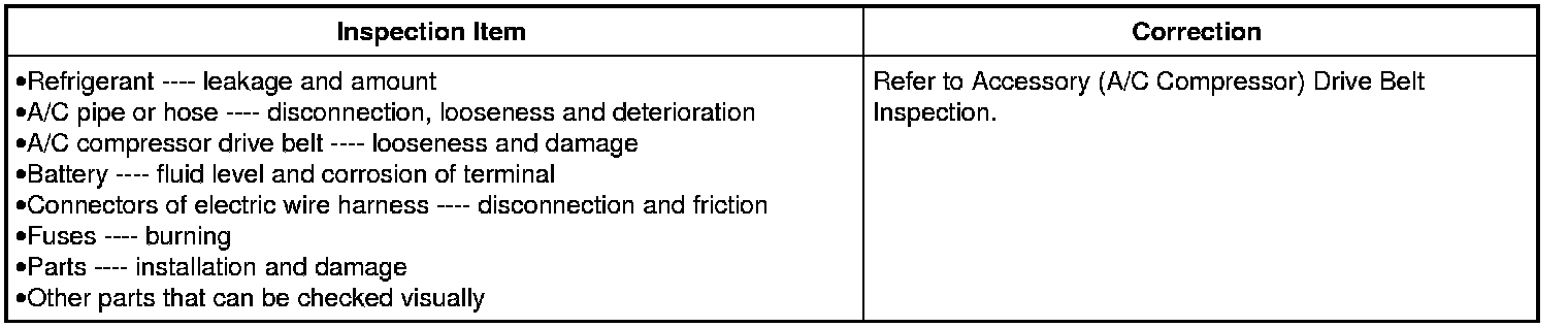 Visually check the following parts and systems.