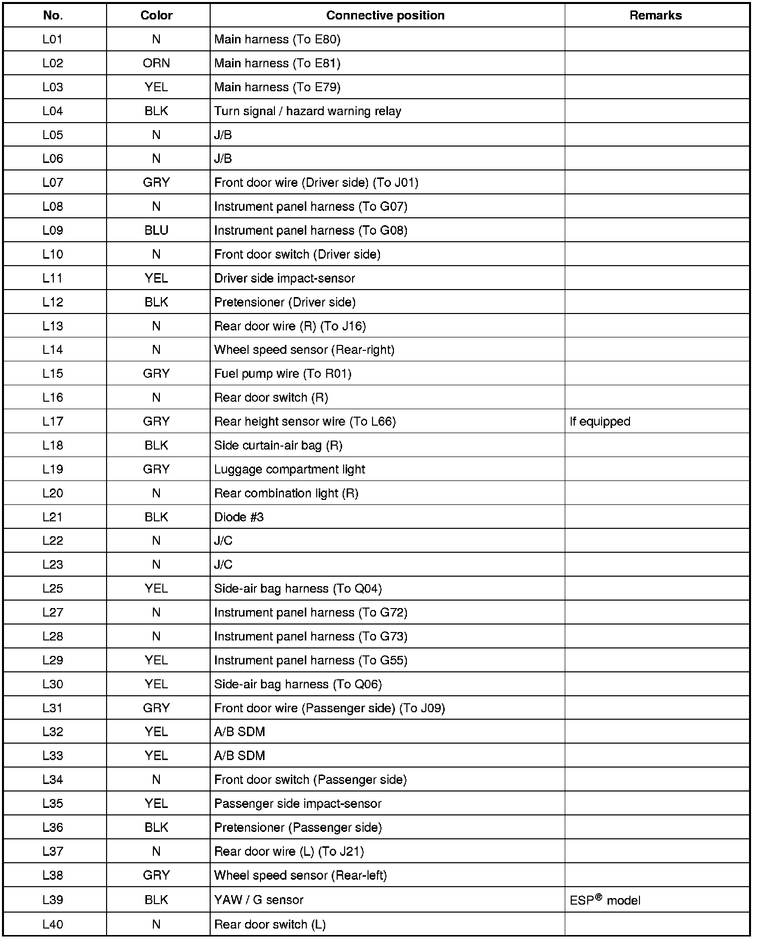 L: Seat Sensor (R) Wire