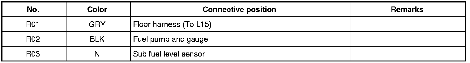 L: Floor Harness, Canister Wire, Seat Sensor (R) Wire, Seat Sensor (L) Wire, Rear Height Sensor Wire / R: Fuel Pump Wire / Q: Side-Air Bag Harness