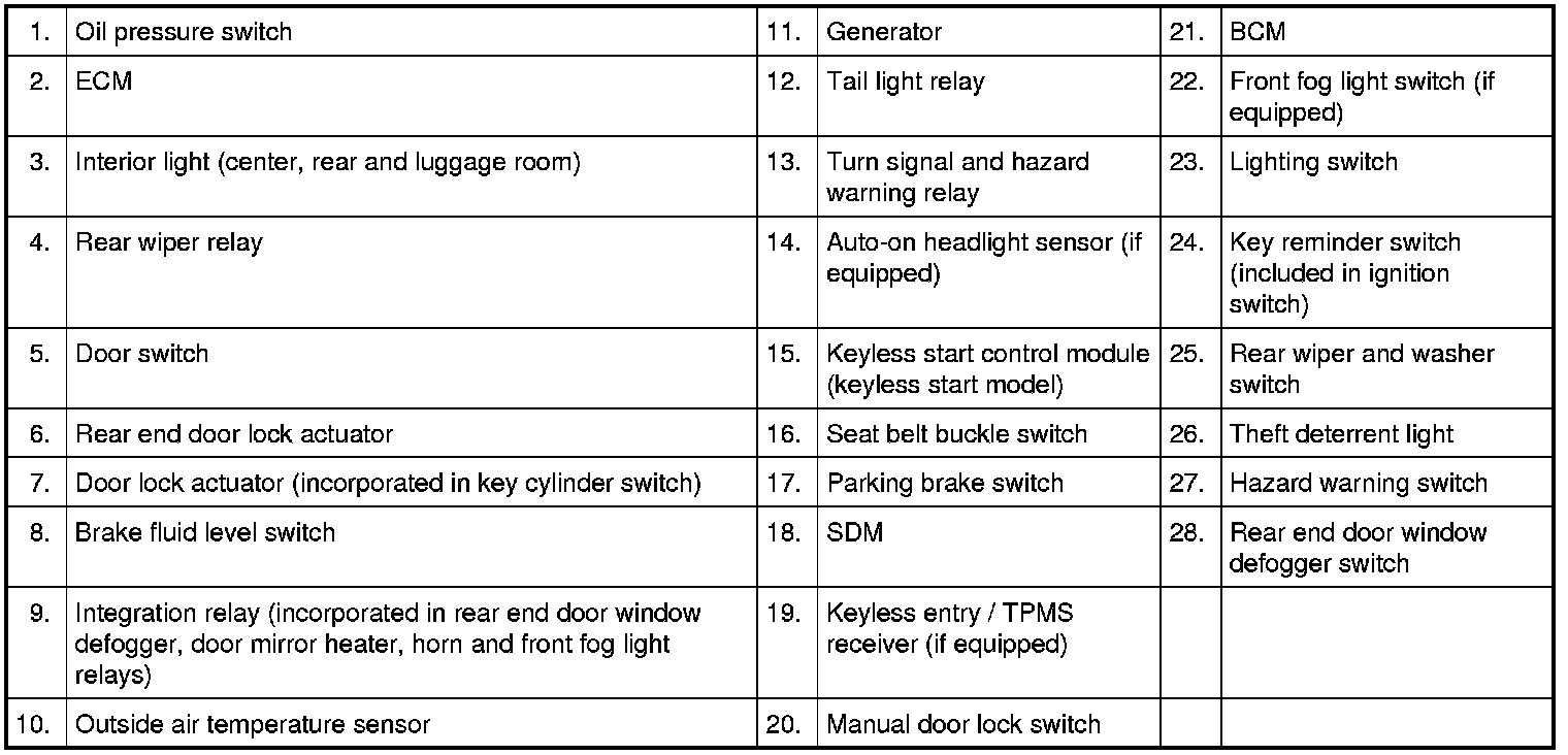 BCM and Related System Component Location