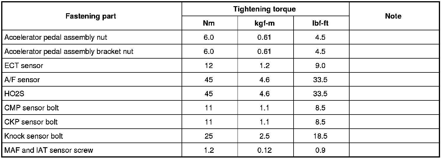 Tightening Torque Specifications