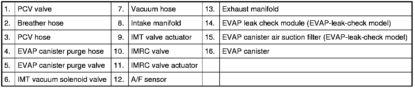 The emission control system includes EVAP and PCV systems.
