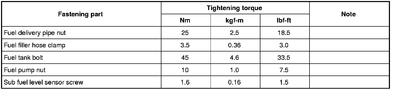 For the tightening torques of fasteners not specified in this section, refer to Fastener Information Fastener Information.