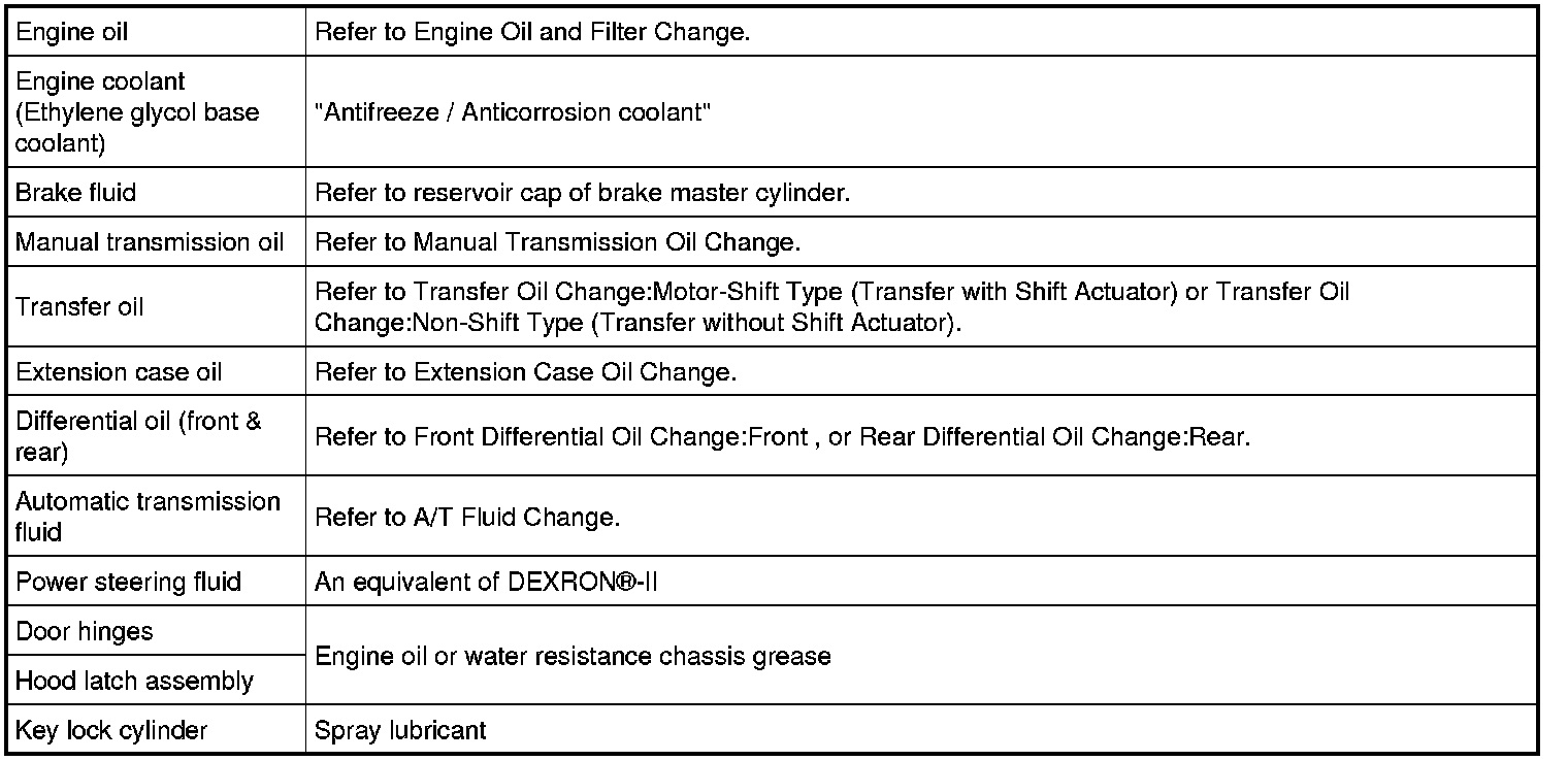 Recommended Fluids and Lubricants