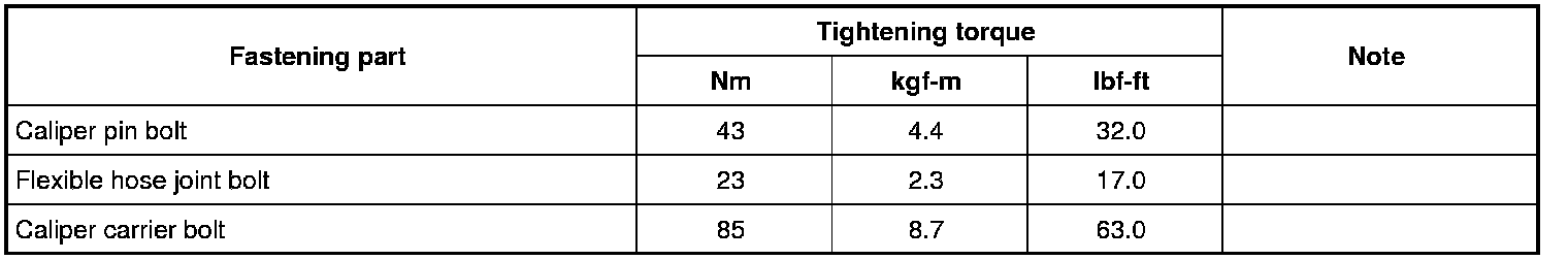 For the tightening torques of fasteners not specified in this section, refer to Fastener Information Fastener Information.